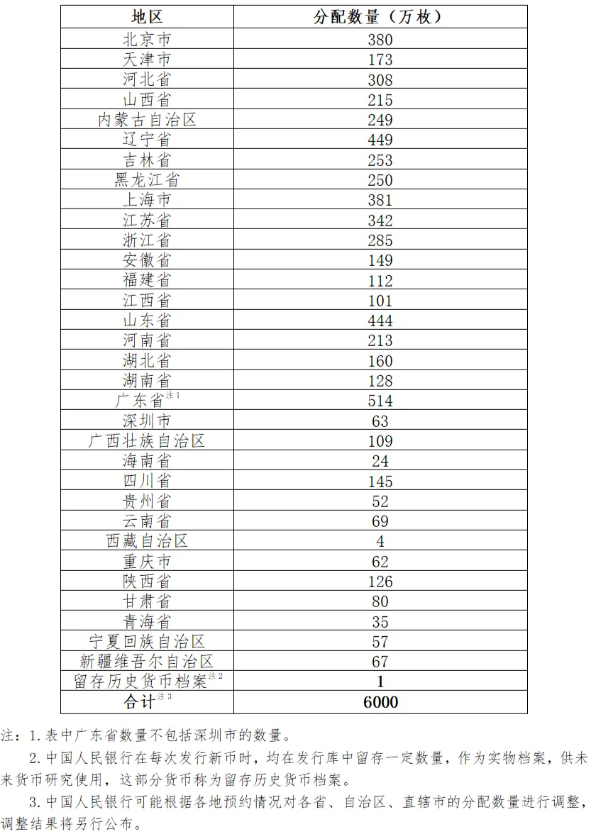来源:中国新闻网 中新网11月3日电 据中国人民银行微信公众号消息,中国人民银行定于2025年11月25日发行中国京剧艺术普通纪念币一枚。 一、普通纪念币图案 中国京剧艺术普通纪念币正面主图案为中华人民共和国国徽,国徽上方刊“中华人民共和国”国名,下方刊年号“2025”字样,辅以中国戏曲乐器图案;背面主图案为中国京剧艺术中净角形象,局部为彩色图案,辅以装饰化图形,并刊“中国京剧艺术”及面额“5元”字样。 ![]() 正面图案 ![]() 背面图案 二、普通纪念币面额、规格、材质和发行数量 中国京剧艺术普通纪念币面额为5元,直径为30毫米,材质为黄铜合金,发行数量为6000万枚。各省、自治区、直辖市分配数量如下: ![]() 三、普通纪念币发行方式 中国京剧艺术普通纪念币采取预约兑换方式发行。具体工作安排如下: (一)承办预约兑换工作的银行业金融机构 中国工商银行、中国农业银行、中国银行、中国建设银行、交通银行、中国邮政储蓄银行、华夏银行、浦发银行、苏州银行、徽商银行、长沙银行、陕西省农村信用社联合社(以下统称承办银行)共同承担中国京剧艺术普通纪念币的预约兑换工作。各地区具体安排如下: ![]() (二)各地预约分配数量公布 2025年11月17日前,中国人民银行分支机构将向社会公告当地中国京剧艺术普通纪念币的分配数量等信息。承办银行将在其官方网站公布中国京剧艺术普通纪念币预约兑换网点和每个网点的可预约数量等信息。 (三)预约安排 承办银行于2025年11月18日至11月19日办理中国京剧艺术普通纪念币的预约业务。公众可通过承办银行官方网站等线上渠道或在营业时间内前往承办银行公布的预约兑换网点进行预约登记,每人只能预约一次。 (四)预约核实期安排 2025年11月22日至11月24日为预约核实期。预约核实期内,未通过核查的公众可持预约登记使用的第二代居民身份证原件,前往预约登记的承办银行网点办理撤销违约记录及保留兑换资格业务。具体办理流程见《中国人民银行公告》(〔2019〕第26号)。 (五)兑换安排 承办银行于2025年11月25日至12月1日办理中国京剧艺术普通纪念币预约兑换业务。公众可按照约定的时间,持在预约系统中登记的有效身份证件,前往约定的承办银行网点办理预约兑换业务。每人最多可代5人办理预约兑换业务。若本次预约未兑换,相关信息将被记录,并影响下一次普通纪念币兑换,请预约成功的公众按时办理兑换。 中国人民银行各分支机构可根据实际情况延长中国京剧艺术普通纪念币兑换期。 (六)预约兑换限额 中国京剧艺术普通纪念币每人预约、兑换限额为20枚。 (七)身份证件要求 中国京剧艺术普通纪念币预约、兑换、核实的有效身份证件必须为第二代居民身份证原件。代他人办理的,须提供代办人和被代办人的有效第二代居民身份证原件。由于第二代居民身份证原件遗失、未成年人未办理第二代居民身份证等原因,无法出具第二代居民身份证原件的,可以使用户口簿、临时居民身份证办理。 (八)预约兑换信息公布 中国人民银行、承办银行将在中国京剧艺术普通纪念币预约和兑换期的每个工作日,在其官方网站公布全国各地区网上预约、现场预约及预约兑换进度。中国人民银行上海总部,各省、自治区、直辖市及深圳市分行将在中国京剧艺术普通纪念币预约和兑换期的每个工作日,在其官方网站公布辖区各地网上预约、现场预约及预约兑换进度,在中国京剧艺术普通纪念币发行期间公布全国各省(区、市)监督举报电话。欢迎公众查询并监督。 四、中国京剧艺术普通纪念币公众防伪特征 (一)疏密齿 硬币外缘分布有疏密排列的丝齿。 (二)隐形图文 将硬币倾斜适当角度,在背面图案两个人物中间位置可观察到隐形图文“净”。 (三)微缩文字 背面人物肩膀位置可观察到微缩文字“J”。 ![]() 五、中国京剧艺术普通纪念币与现行流通人民币职能相同,与同面额人民币等值流通。